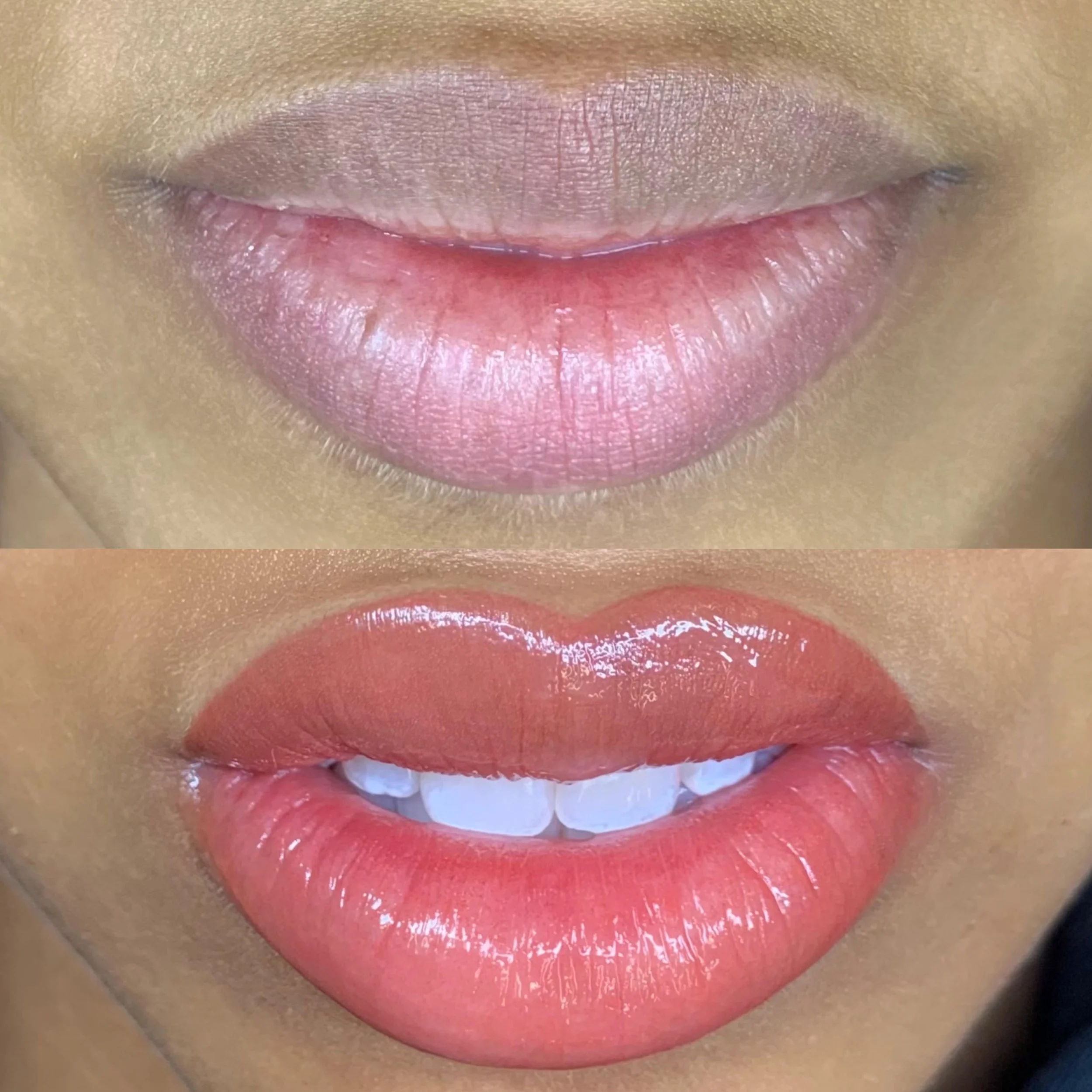 Melanin Rich Lips can be neutralized using corrective colors. Every client requires a different approach to reach the best result. The Lip Neutralization treatment is ideal if your lips have a brown, blue or purple hue. Depending on the saturation and darkness of the lips, more than one neutralization session may be needed. Only after the lips are neutralized can we tattoo a target color. The final result is that of lip blush.